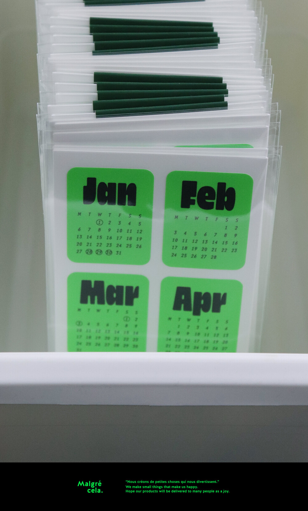달력 스티커는 리무버블 스티커지로 제작되어 부착 후에도 쉽게 제거가 가능합니다.