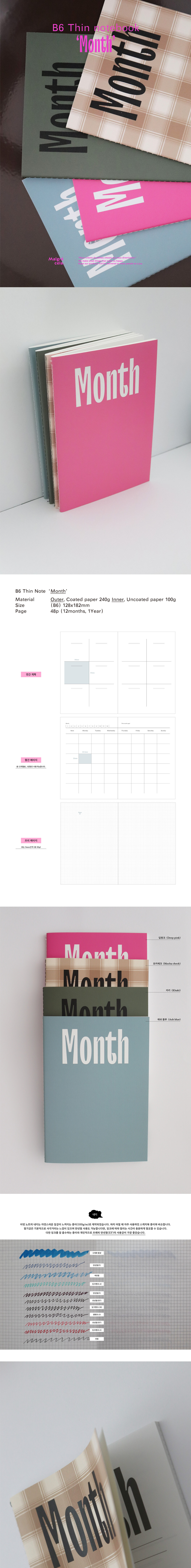 얇고 가벼운 타입의 플래너로 늘 곁에 두고 사용하기에 좋습니다.