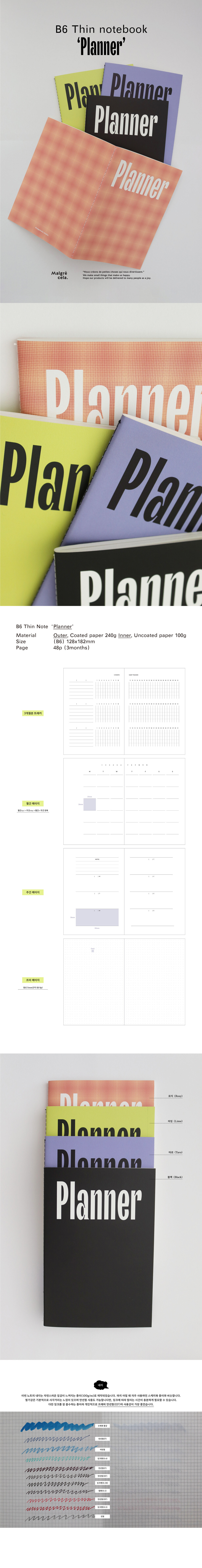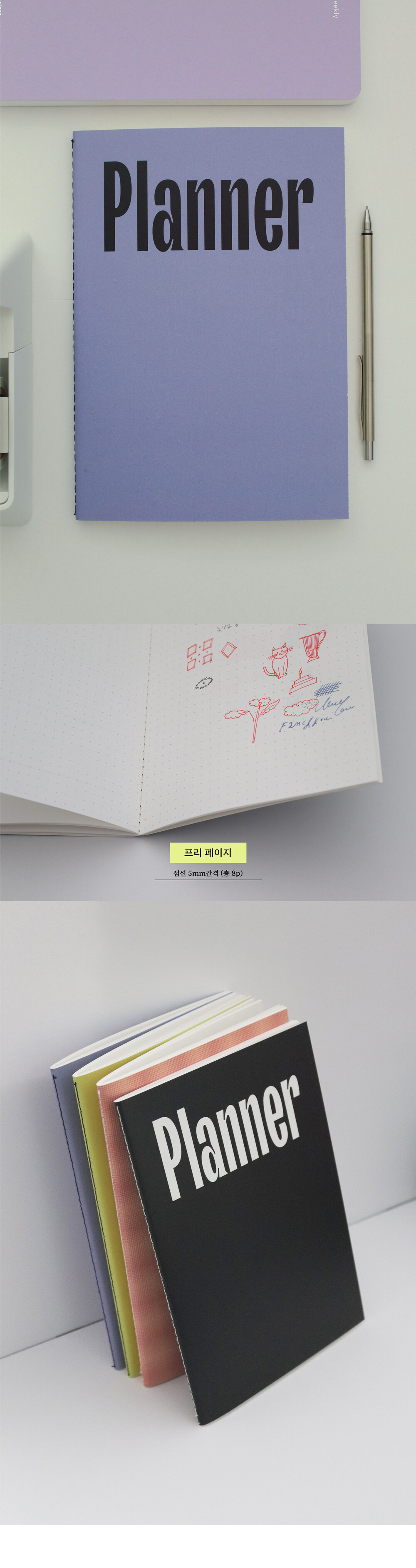 얇고 가벼운 타입의 플래너로 늘 곁에 두고 사용하기에 좋습니다.