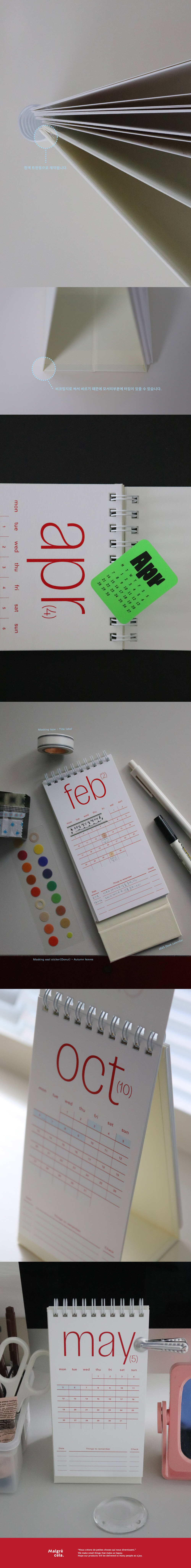책상 위에 올려두기에 너무 크지도 너무 작지도 않은 적당한 크기로 곁에 두고 일정을 기록하거나 확인하기에 알맞습니다. 내지는 자연스러운 광택이 있는 도톰한 종이(FSC)로 제작되어 필기류의 제한없이 사용 가능합니다. 달력의 하단에는 중요 일정을 다시 한 번 체크할 수 있도록 칸을 마련해 활용도를 높였습니다.