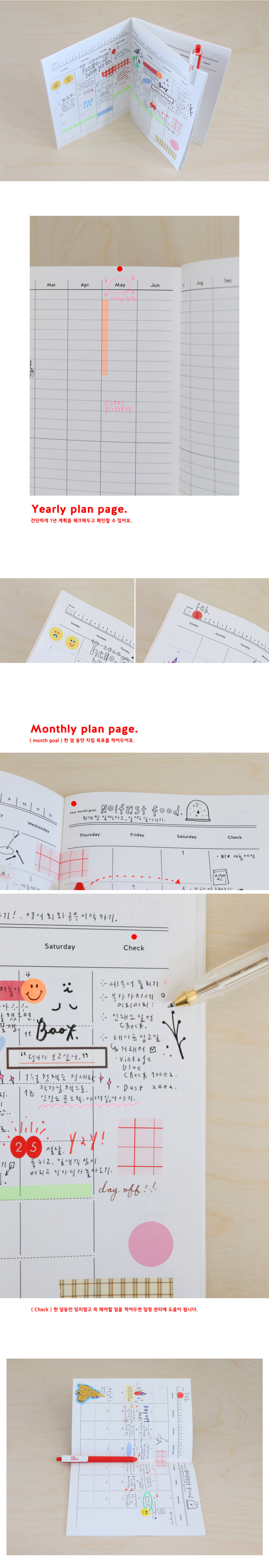 만년형의 플래너로 날짜와 일정을 자유롭게 작성할 수 있습니다.